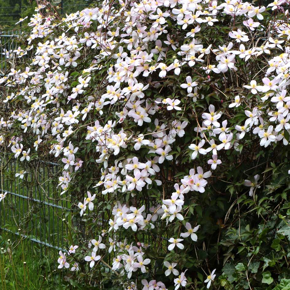 Das sind besonders die der Rückschnittgruppe 2. Es könnten Nordseiten von Häusern sein oder ein Schatten spendender Baum in der Nähe stehen. Das Gartenhäuschen oder der Flechtzaum zum Nachbarn bieten auch nach Norden gute Bepflanzungsmöglichkeiten. Hier bieten sich besonders die helleren Sorten an. Die Farben bleichen nicht aus und geben zudem eine gute Fernwirkung ab.