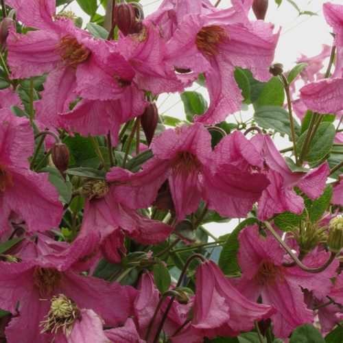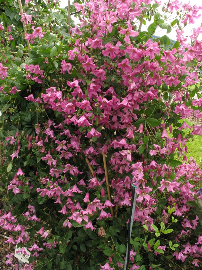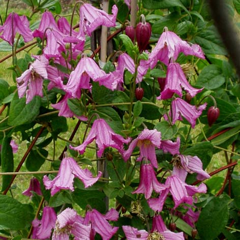 Clematis eriostemon `Heather Herschell´ ist besonders reichblühend und gesund. Die Blütenglöckchen sind sehr Regenfest. Die extrem lange Blütezeit macht diese Sorte wertvoll.