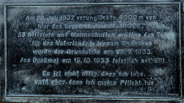 Der Gedenkstein steht auf der Insel Fehmarn zum Gedenken an das Segelschulschiff Niobe, was am 26. Juli 1932, 8 Km vor Fehmarn verunglückte.